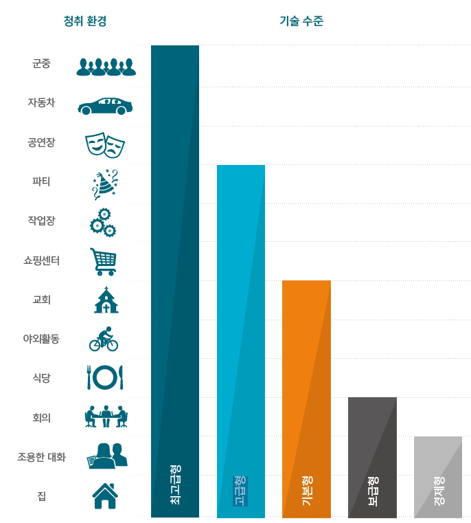 주변 환경에 대한 청취 및 어음 이해도를 향상시켜 만족도를 높여줍니다.