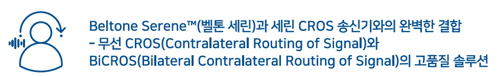 BiCROS는 사용자의 한쪽 귀가 난처이 심해 보청기를 사용해도 청취가 어렵지만, 다른 한쪽 귀가 보청기를 통해 청취할 수 있다면 선택할 수 있는 솔루션입니다.