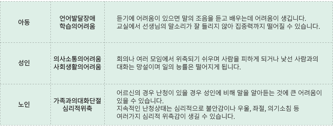 1. 여성과 아이들의 소리가 잘 들리지 않거나 이해하는데 어려움이 있다.