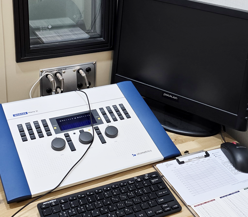 보청기를 착용해 보고 적응단계별 보청기 착용평가와 적합도를 측정하고 성능분석 장비를 통해서 개인별 맞춤을 구현합니다.
